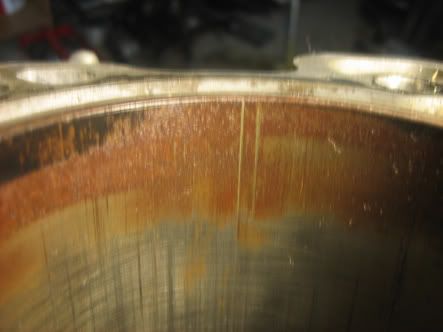 yup the bitch is def blown... car shut off on me one day and i couldnt figure out way.. went through checking for spark and fuel cranked it like 500 times! Sometimes it would turn on but then again right off.. checked my timing, wiring.. everything.. so last i decided to check compression... i pull out the sparkplug and the bottom of it is in pieces.. so i think i found the problem.. i rip off the head and behold what looks like apiston hit a valve.. bent it.. broke it.. and welded the end of the valve to the pistons... so with all the cranks i had chunks of my valve seat missing in my head.. so i rush to the machine shop and drop my head off for emergency surgery.. looks like she is gonna make it.. so while he has the ehad.. i push the car inside the garage. .close the hood and leave it.. well stupid me.. i guess water/antifreeze must of spilled when i pulled the head cuz now i gotta rust village on my walls.. so i pulled the motor out.. took it all apart and am gonna take it to get honed tomorow.. shit i have the worst luck!!!!